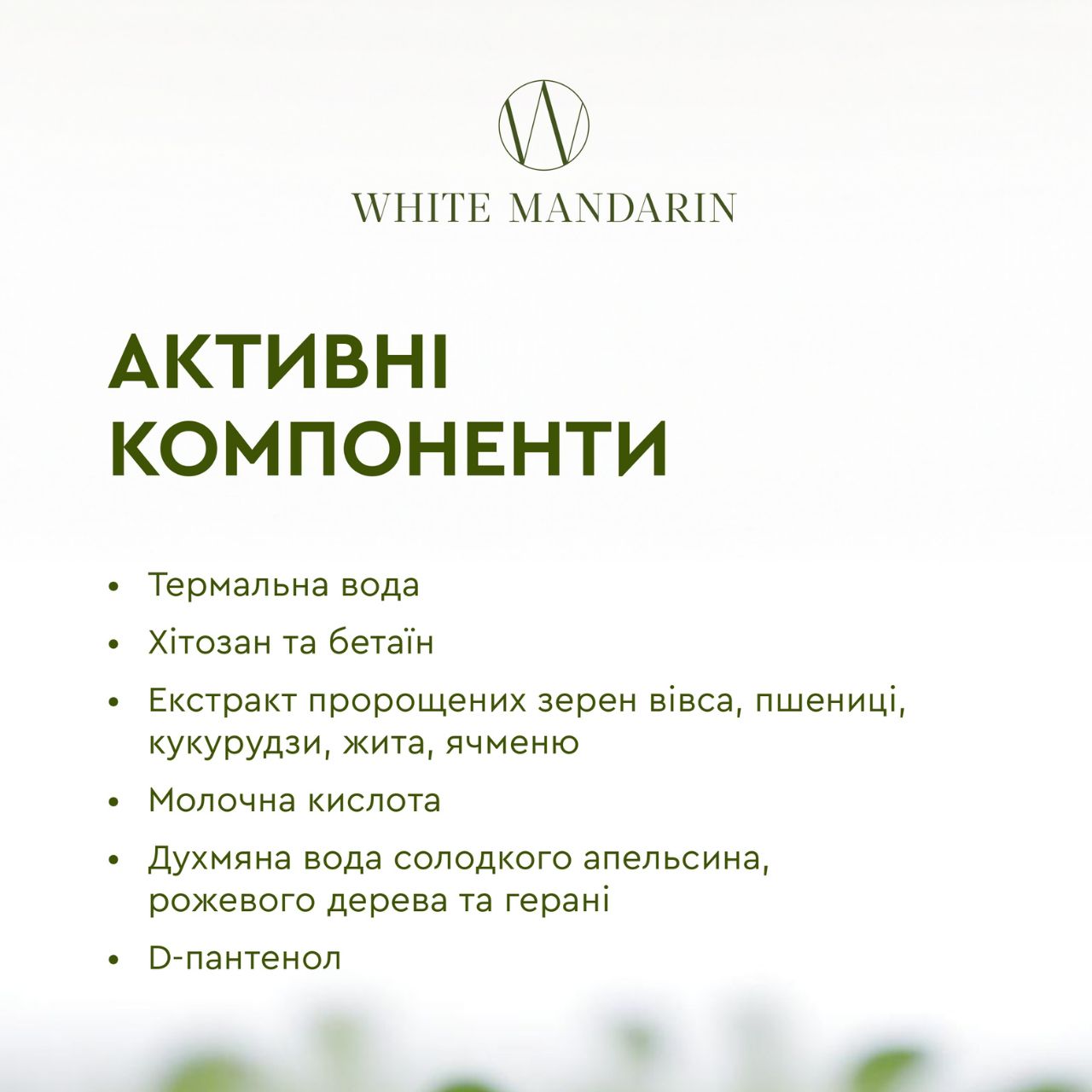 - У фітоспреї White Mandarin відсутня EDTA – кислота, яка утворює у складі косметики канцерогени.